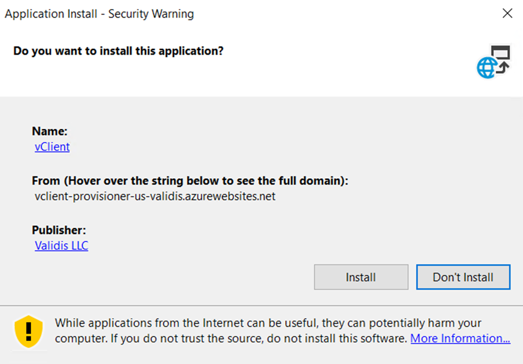 Click Install to continue. Please note the below URL may differ from yours based on your region.