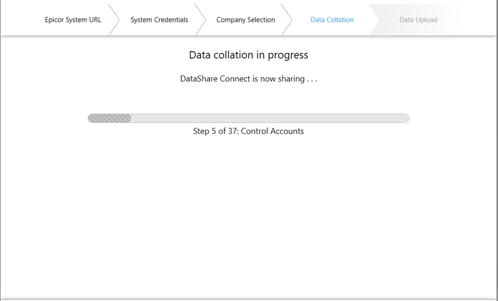 If the access details supplied are correct, the Barclays Connect data extraction process will begin and progress will be displayed on the screen. Depending on the size of your database and the number of entries it contains this process may take a few minutes. Once all data has been extracted the data is then compressed, encrypted, and transmitted securely to the Barclays central server.