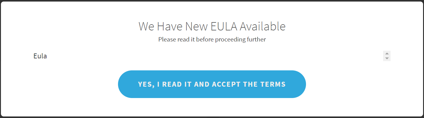You then need to read the End User Licence Agreement (EULA) and when you are happy to proceed, accept the EULA by clicking on ‘Yes, I have read and accept the terms’: